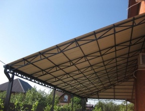 Заказали в начале прошлого года навес. В офисе фирмы выбрали его с понравившимся нам цветом поликарбоната. Замер произвели сами накануне, поэтому в услугах замерщика не было нужды. После оплаты 50 процентов нам назначили дату приезда и монтажа навеса. Сотрудники пояснили, что подобный объём работы занимает три дня, а также сообщили о необходимости оплаты дороги бригады за эти дни. Бригада вовремя прибыла в назначенный день. Работа спорилась, установка прошла довольно быстро, так что хватило двух дней. Уже 8 месяцев проблем с навесом нет, всё красиво и аккуратно. Планируем на этот год опять обратиться к ним, понадобился навес (козырек) над входной дверью. Компания Арсенал Навесов очень понравилась. Хотим пожелать ей процветания.